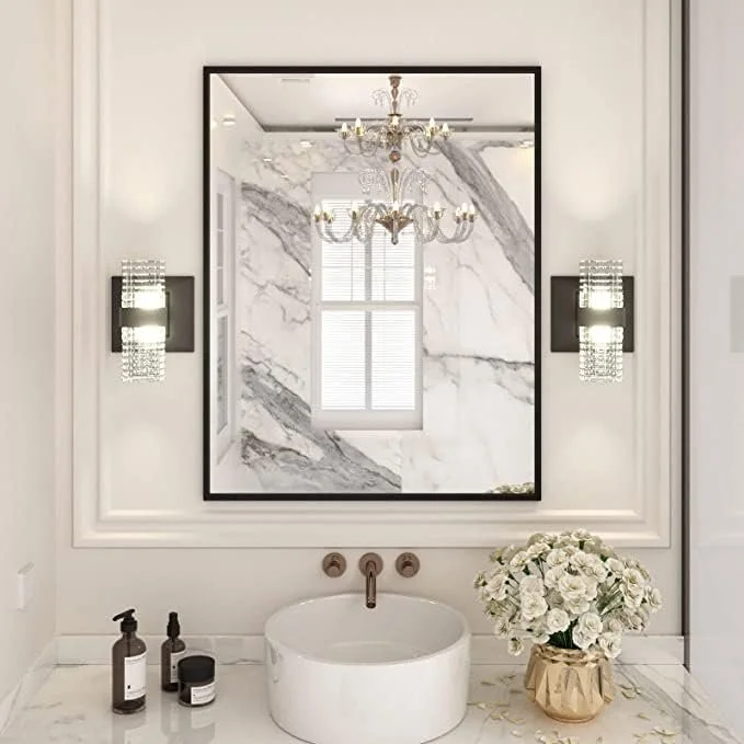 Choose Black Metal Framed Mirrors + Matte Black Sconces